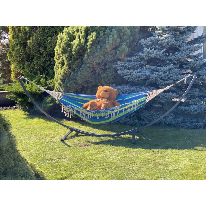 Каркас стійки підходить для всіх типів гамаків: одномісного, двомісного, сімейного. У комплекті зі стійкою надається весь необхідний комплект кріплень для збірки стійки і установки гамака.