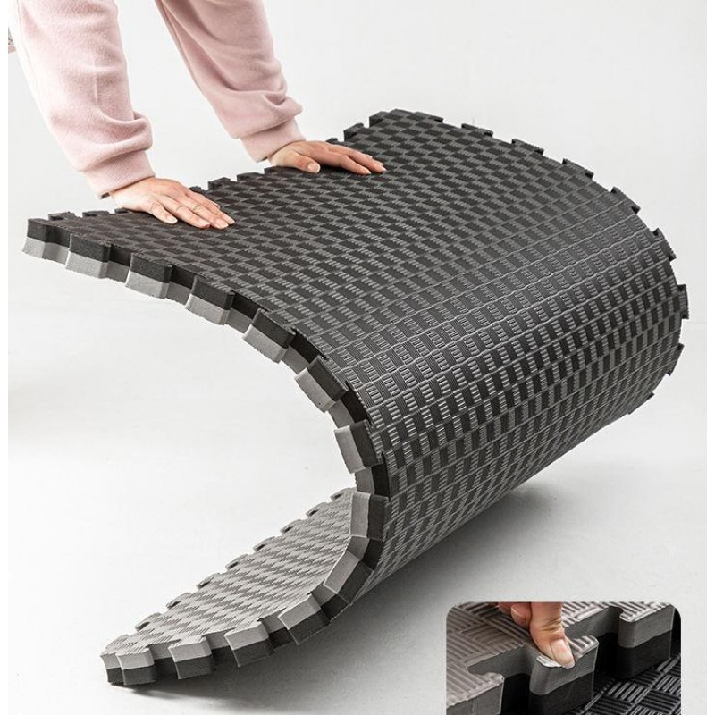 Мат Татамі 1000х1000х30мм чорно-сірий – є одним з найпопулярніших та універсальних видів підлогових покриттів для дитячих майданчиків, спортивних закладів, фітнес-клубів та інших спортивних приміщень. Вони виготовляються з безпечного матеріалу на основі етиленвінілацетату (EVA/ЕВА) і мають низьку вагу та простоту у монтажі. Татамі складаються з пазлів, які легко з'єднуються між собою, що робить процес монтажу швидким та простим.