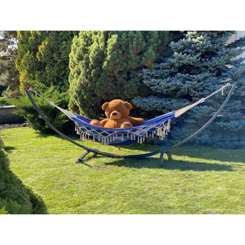 Ми є виробником цих гамаків і рам для них. З цього тільки у нас Ви зможете підібрати металеву раму під гамак, яка доступна в 6 кольорах! Для каркаса використовується добірний профіль товщиною 2 мм, який гарантує безпечне використання.