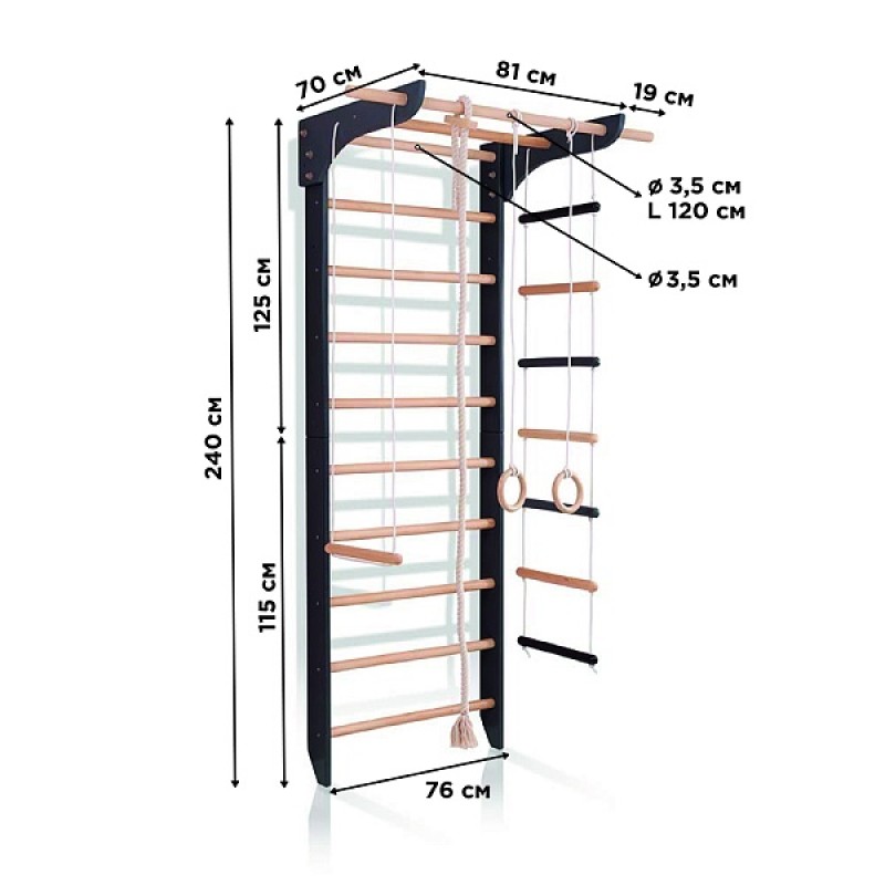 Спортивний куточок SportBaby 5-Lux 760х2400 мм, чорний, код: 5-Lux 1-240
