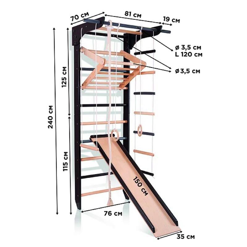 Спортивний куточок SportBaby 5-Lux 760х2400 мм, чорний, код: 5-Lux 3-240