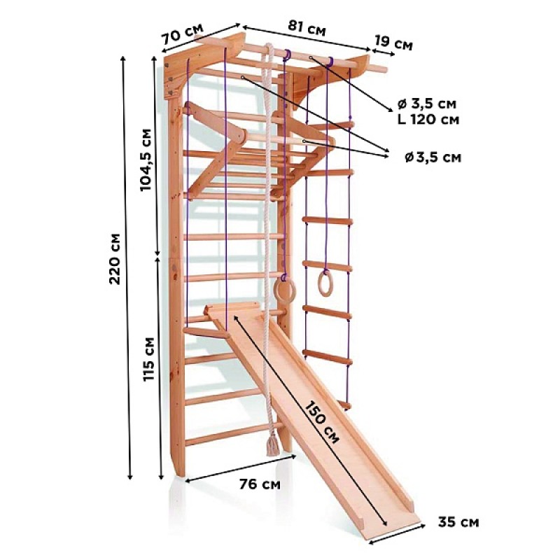 Спортивний куточок SportBaby 10-Lux 760х2200 мм, натуральне дерево, код: 10-Lux 3-220