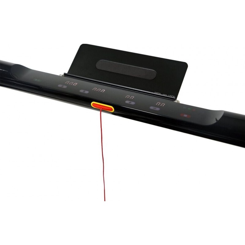 Ергономічна панель керування дозволяє зручно керувати такими параметрами, як час, швидкість, дистанція, калорії та кількість кроків. Особливо корисними є кнопки швидкого вибору швидкісних програм. Одним рухом ми можемо змінити швидкість на 3 або 5 км/год.