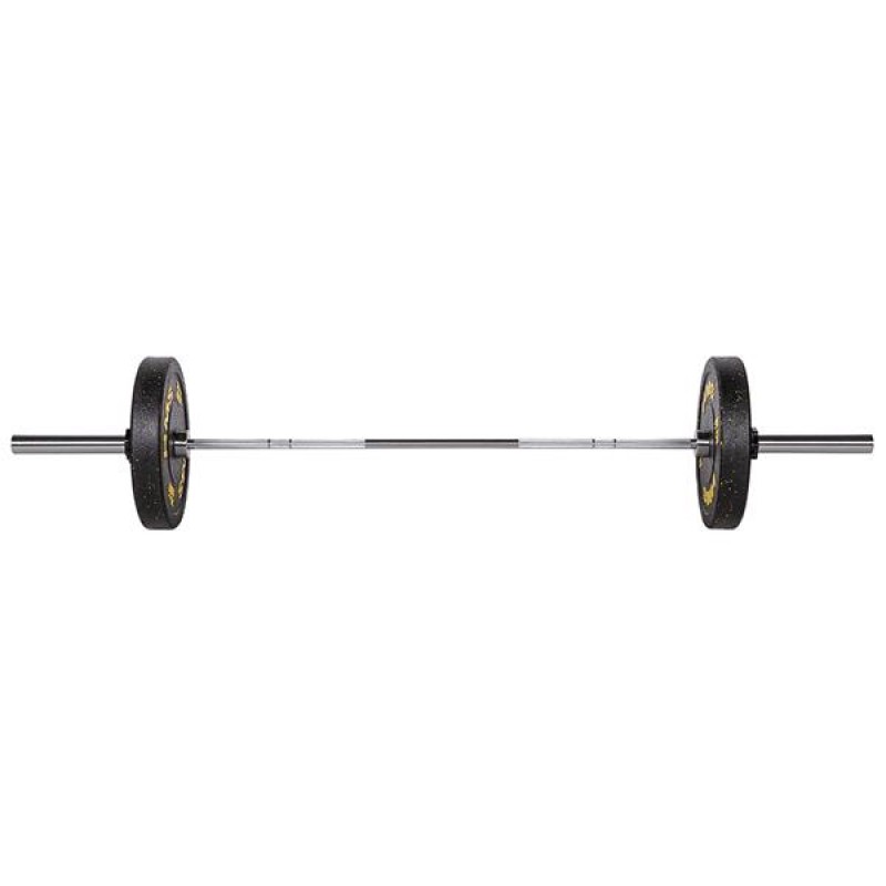 Олімпійська штанга GO900 HMS виготовлена з хромованої загартованої сталі. Штанга HMS відома своєю міцністю в поєднанні з ідеальною гнучкістю. У комплект входить планка і 2 нашийника. Надійне та зручне захоплення забезпечується накаткою. Максимальне навантаження становить 900 кілограм. У свою чергу, діаметр 30 мм забезпечує комфорт під час тренування. Хромована сталь гарантує гарний зовнішній вигляд і довгий термін служби виробів. Також це чудовий захист від іржі. Олімпійська штанга GO900 HMS має 10 голчастих роликових підшипників (по 5 з кожного боку), вони роблять обертання вантажу плавним і тихим. Його конструкція усуває навантаження на кінці циліндрів, і в результаті підшипник може використовуватися довше. Незважаючи на малий поперечний переріз, голчасті роликові підшипники мають високу жорсткість і вантажопідйомність. Дві кліпси для коміра, що входять в комплект, забезпечують стабільне положення гирі на перекладині під час виконання вправ. Затискачі мають гумові притискні подушечки, тому вони не пошкоджують пластини чи стрижні, але гарантують, що вони залишатимуться міцно на місці. Специфікація: Матеріал: загартована хромована сталь Тип: олімпійська Загальна довжина (мм): 2200 Діаметр рукоятки (мм): 30 Рукоятка: рифлена Довжина гучної втулки (мм): 415 Діаметр гучної втулки (мм): 50 Підшипники: 10x голка затискачі: 2x губки PSI: 235000 Максимальне навантаження (кг): 900 Вага продукту (кг): 20