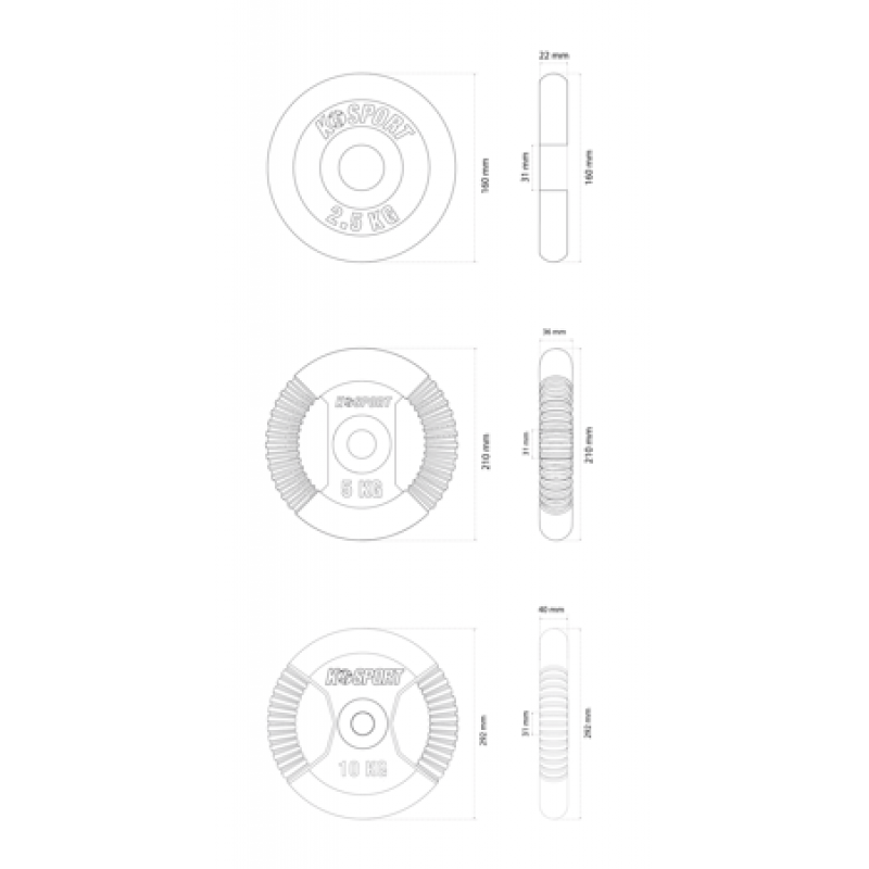 Набір чавунних дисків K-Sport OZ50 50 кг (2х10 кг, 4х5 кг, 4х2,5 кг), код: KS-303-IN