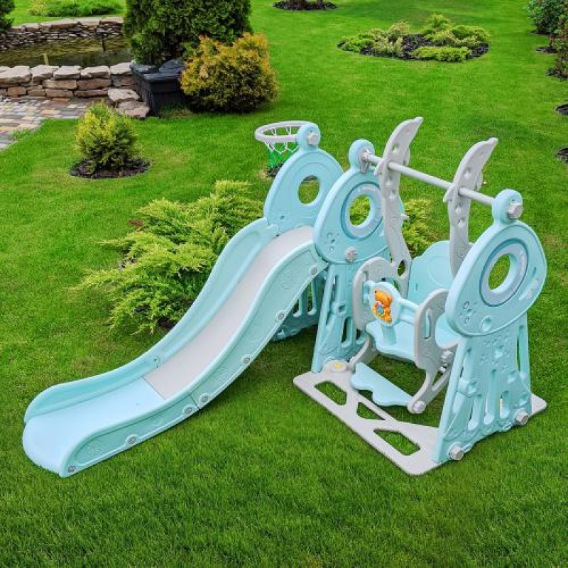 Гірка-гойдалка з баскетбольним кільцем Bambi WM19011-5 сіро-м”ятна, код: 6903317252565