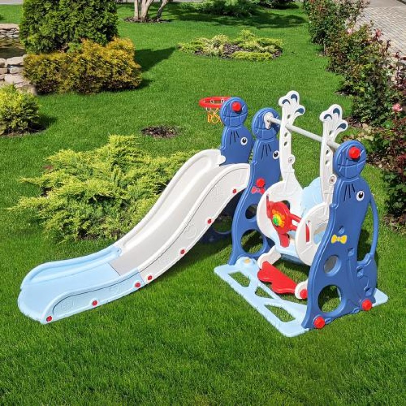 Гірка-гойдалка з баскетбольним кільцем Bambi WM19020-4 біло-блакитний, код: 6903317252626