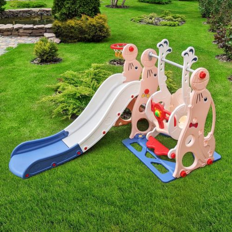 Гірка-гойдалка з баскетбольним кільцем Bambi WM19020-8 персико-синій, код: 6903317252640
