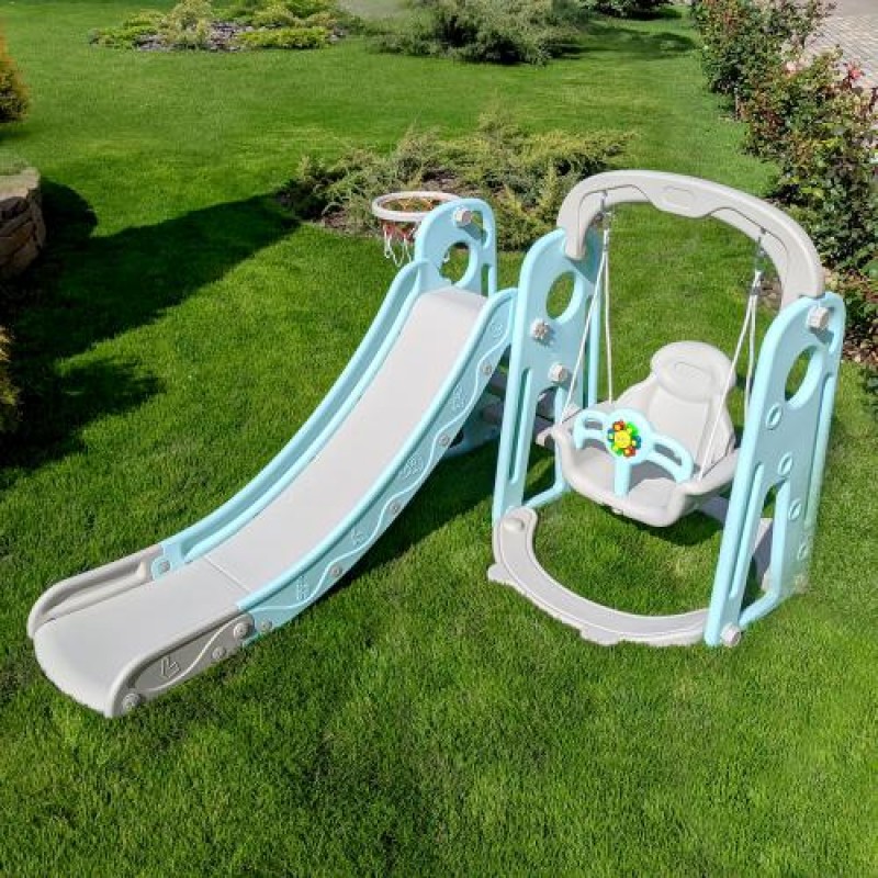 Гірка-гойдалка з баскетбольним кільцем Bambi YG2020-1-4 сіро-м'ятний, код: 6903317365517