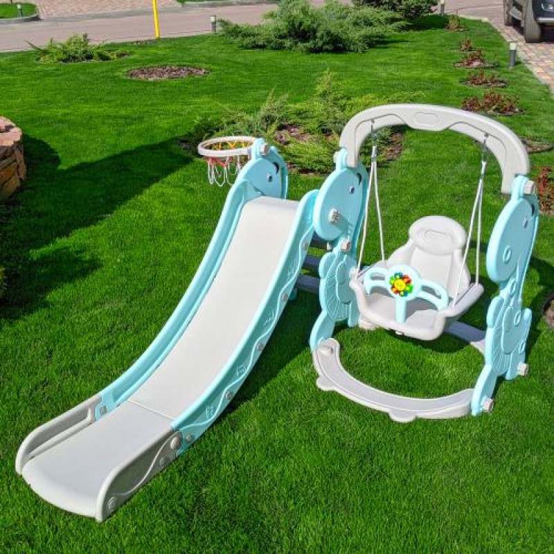 Гірка-гойдалка з баскетбольним кільцем Bambi YG2020-2-4 сіро-м'ятний, код: 6903317365531