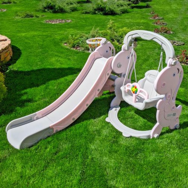 Гірка-гойдалка з баскетбольним кільцем Bambi YG2020-2-8 сіро-рожевий, код: 6903317365548