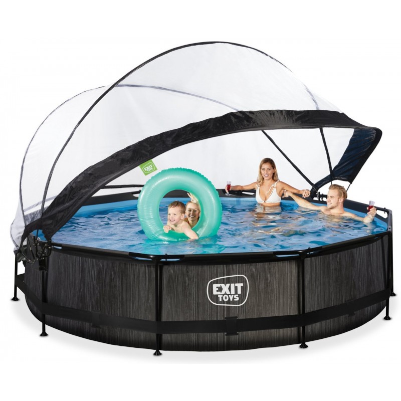 Басейн 360 х 76 см з куполом EXIT "чорне дерево" виглядає лаконічно і елегантно. З зовнішньої сторони - тканина "чорне дерево", що зробить його розміщення в саду, на дачі або у дворі будинку особливо естетичним.