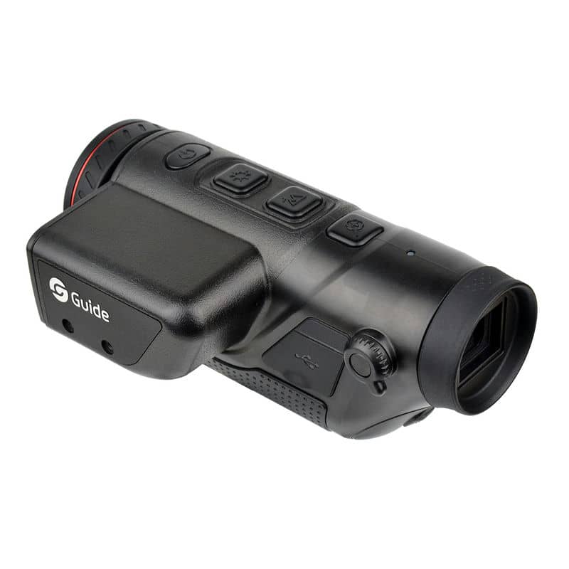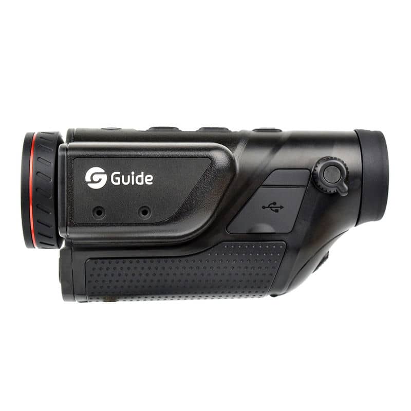 Guide TD431 LRF — компактний та потужний тепловізійний монокуляр з 35-мм об'єктивом та оновленою 12µm матрицею роздільною здатністю 384x288 пікселів. Пристрій здатний виявляти теплові об'єкти на відстанях до 3000 метрів, пропонуючи при цьому середній кут огляду. Вбудований лазерний далекомір та цілевказівник підвищують зручність та функціональність, а живлення від змінних акумуляторів 18650 забезпечує чудову енергонезалежність.