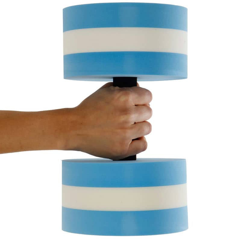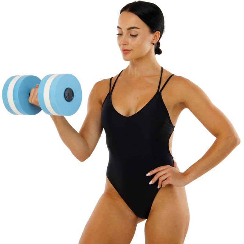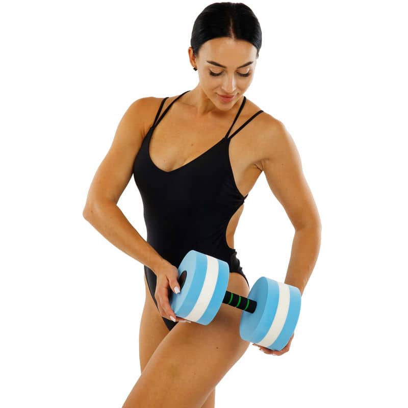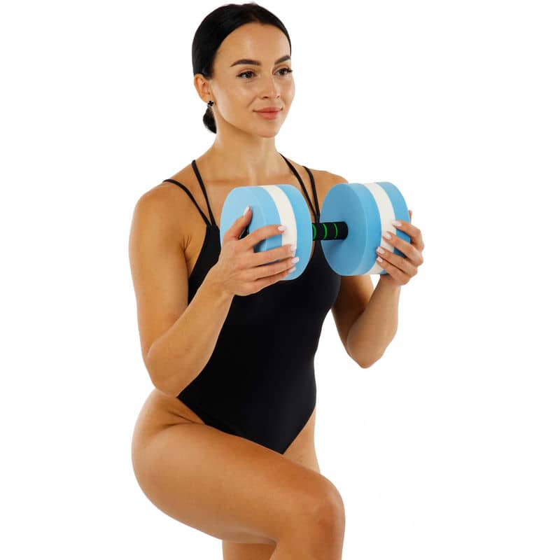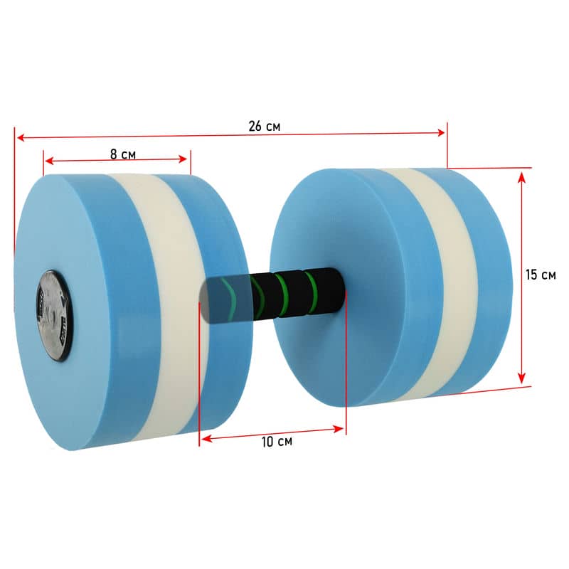 Матеріал EVA також має відмінну плавучість, що забезпечує легкість у використанні гантелей у воді. Цей матеріал не вбирає воду, що запобігає обтяженню гантелей і дозволяє зберігати свої властивості протягом усього часу використання. Розміри гантелей - довжина 26 см і діаметр 15 см - забезпечують зручне захоплення та достатню поверхню для створення опору у воді. Завдяки цим параметрам інвентар створює оптимальний опір, що дозволяє ефективно опрацьовувати м'язи верхньої частини тіла, включаючи руки, плечі та грудні м'язи.