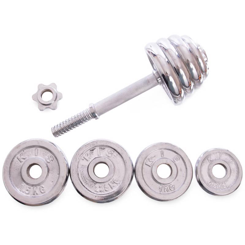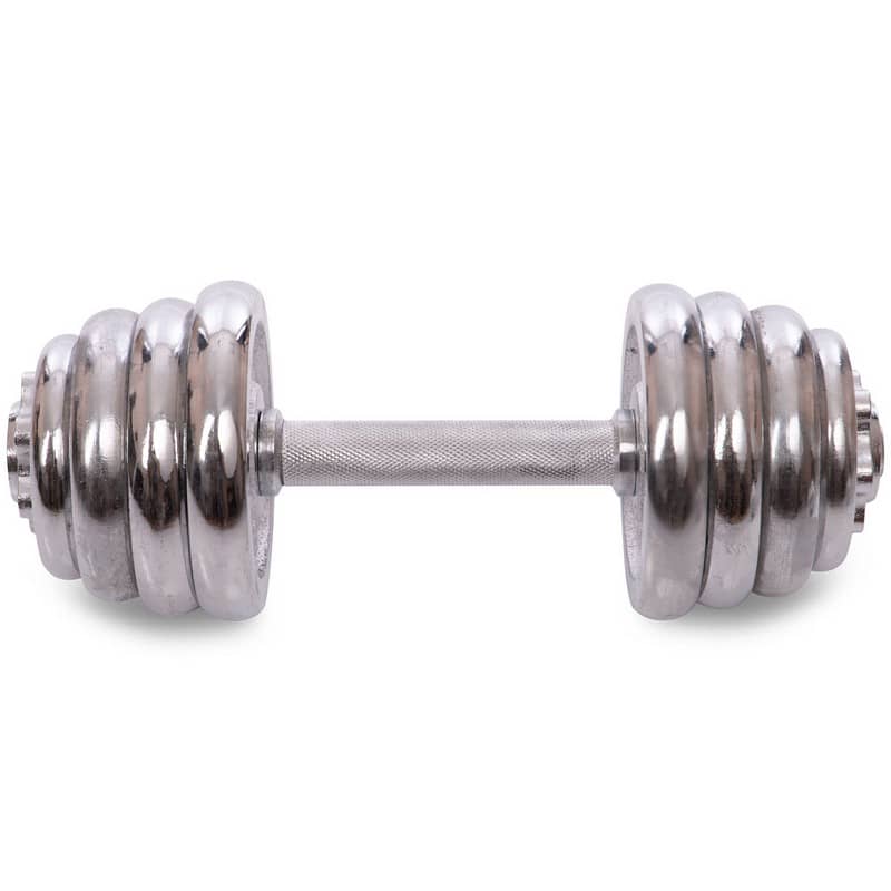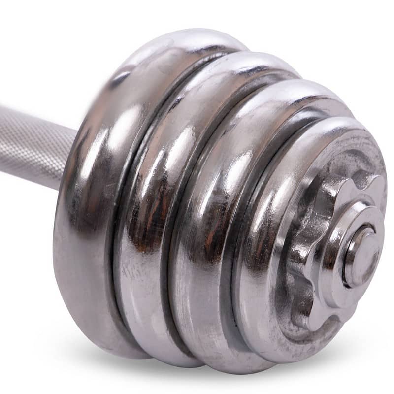 Розбірні гантелі - це один з найпоширеніших типів спортивного обладнання серед ентузіастів фітнесу. Завдяки можливості швидко змінювати навантаження, вони більш універсальні, ніж вільні обтяження з фіксованою вагою. Тому гантелі однаково хороші для використання вдома, в фітнес-студії або в тренажерному залі. З ними можна працювати практично над всією мускулатурою тіла - згинання на біцепс, розгинання на трицепс, розводки і жими для великих грудних м'язів, присідання - список вправ дуже великий. Це робить їх популярними і серед спортсменів-початківців, і серед просунутих користувачів. Гантелі виготовлені з високоякісної хромованої сталі і мають стильний, естетично привабливий дизайн. Комплект включає в себе два грифа, два замки і набір вагових млинців. Для забезпечення максимального комфорту і безпеки тренувань на центральну частину грифів (область захоплення) нанесені насічки, що запобігає ковзанню долоні. У той же час зіркоподібні замки (гайки Вейдера) дозволяють швидко зібрати/розібрати гантелі і забезпечують надійну фіксацію млинців - вони не бовтаються і тим більше не можуть впасти.