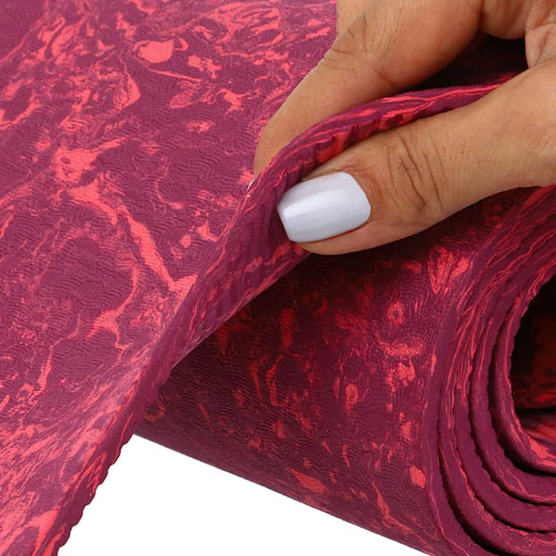 Килимок виготовлений з термопластичного еластомеру (TPE), який є високоякісним синтетичним матеріалом з унікальними властивостями. TPE відрізняється м'якістю та еластичністю, що робить виріб приємним на дотик і зручним для використання протягом тривалого часу. Цей матеріал також стійкий до зношування, що гарантує довговічність килимка навіть при регулярних та інтенсивних тренуваннях.