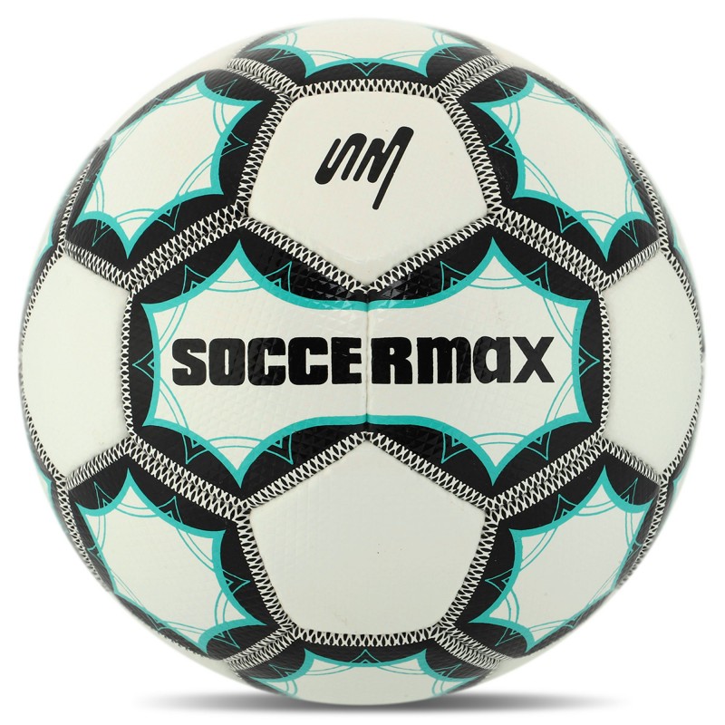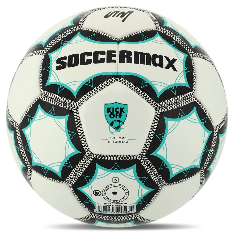 М"яч футбольний Soccermax №5, білий-бірюзовий, код: FB-8079_WT