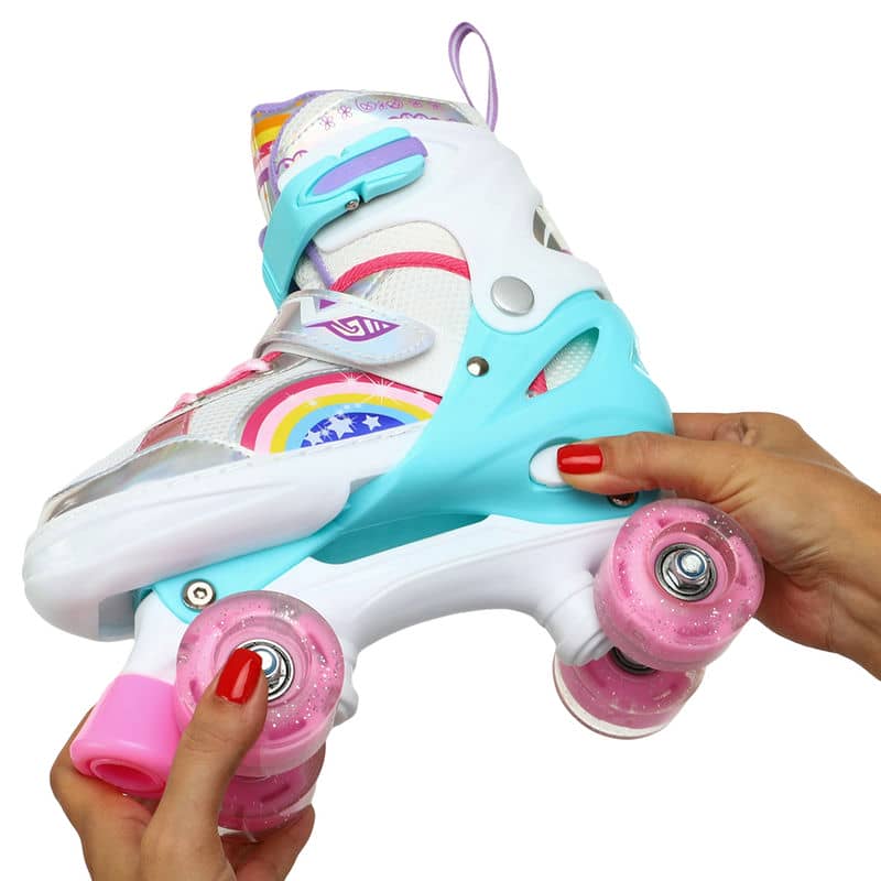 Ролики розсувні квади підходять для дітей і підлітків, які хочуть активно проводити час на свіжому повітрі. Вони забезпечують стабільність, безпеку та комфорт, що робить їх відмінним вибором для початківців та просунутих ролерів.
