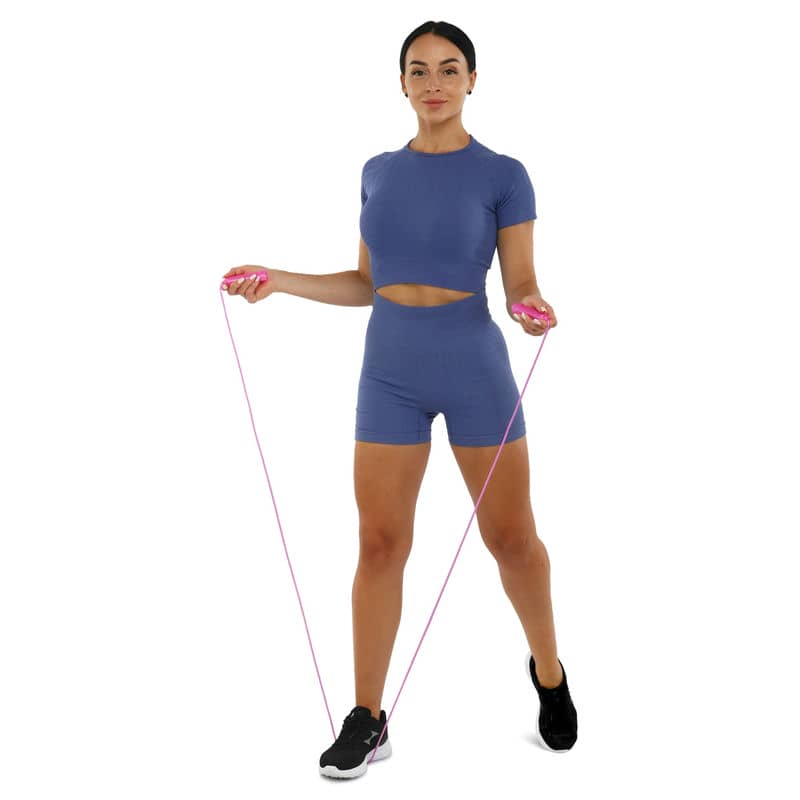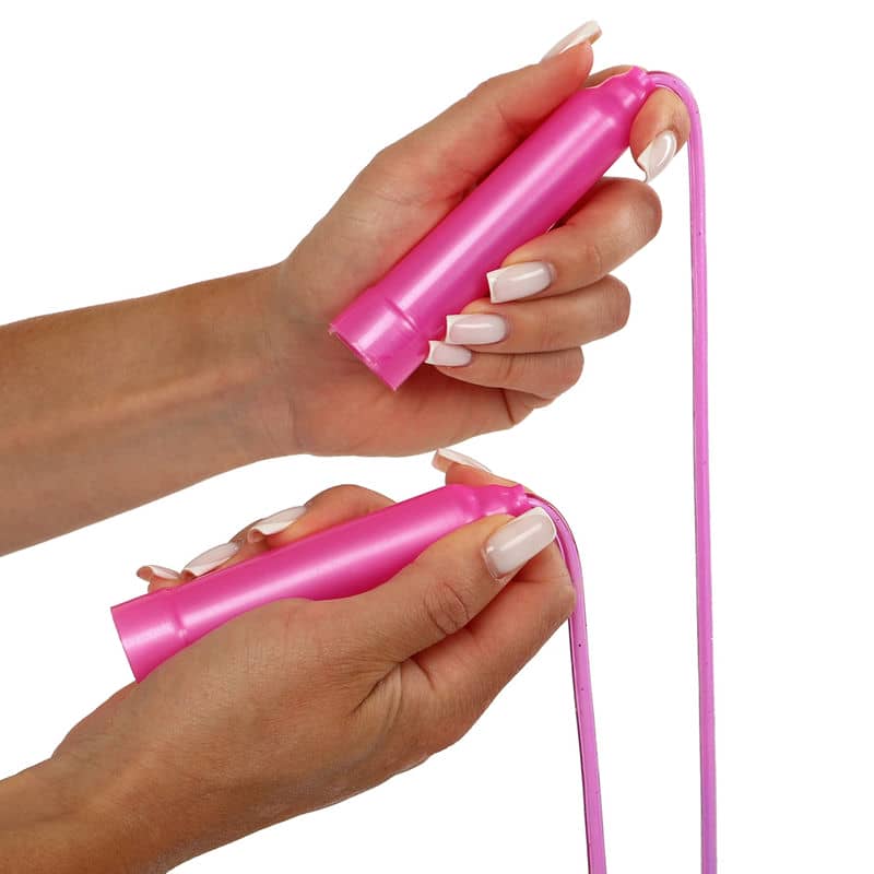 Для виробництва скакалки використовуються хімічно неактивні, екологічно безпечні матеріали, які можуть викликати алергію. Джгут виготовлений з високоякісного міцного полівінілхлориду (PVC), стійкого до розтягування та зношування. Міцні та легкі пластмасові рукояті мають ергономічну форму та оптимальний розмір, щоб поміститися у маленьких руках дитини та не створювати зайвого навантаження на зап'ястя. Якщо довжина джгута буде велика для юного спортсмена, то її можна зменшити відповідно до зростання, а потім поступово збільшувати, у міру того, як він зростатиме.