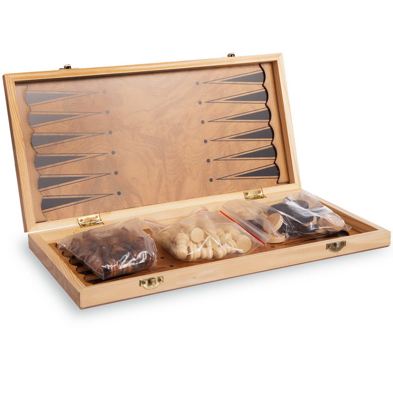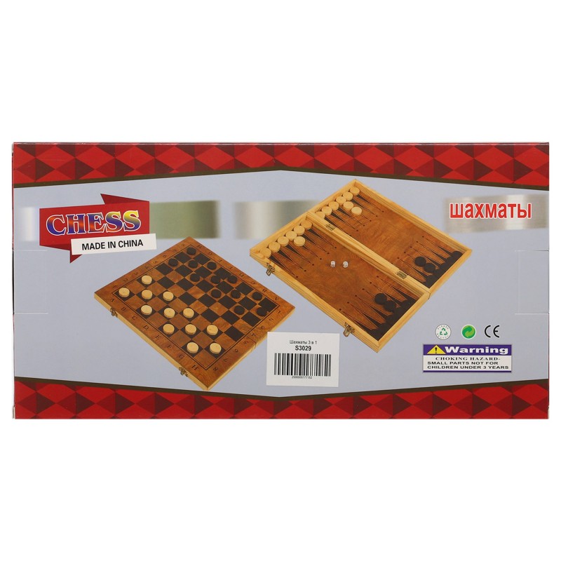 Набір 3 в 1 S3029 – шахи, шашки, нарди дерев'яні – забезпечує раціональне зберігання одразу трьох чудових ігор і надає вам можливість у будь-який момент зіграти в будь-яку з них.