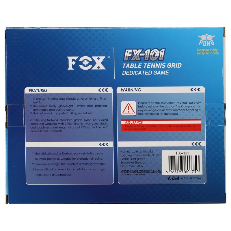 Сітка Fox FX-101 є надійним і довговічним рішенням для любителів і професіоналів настільного тенісу. Основний матеріал виготовлення - пластик, що забезпечує довговічність та стійкість до зносу. Це дозволяє інвентарю зберігати свої характеристики навіть за інтенсивного використання. Цей матеріал також сприяє стійкості до зовнішніх впливів, таких як волога та перепади температур.