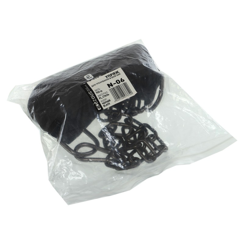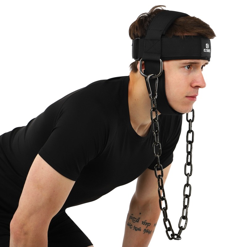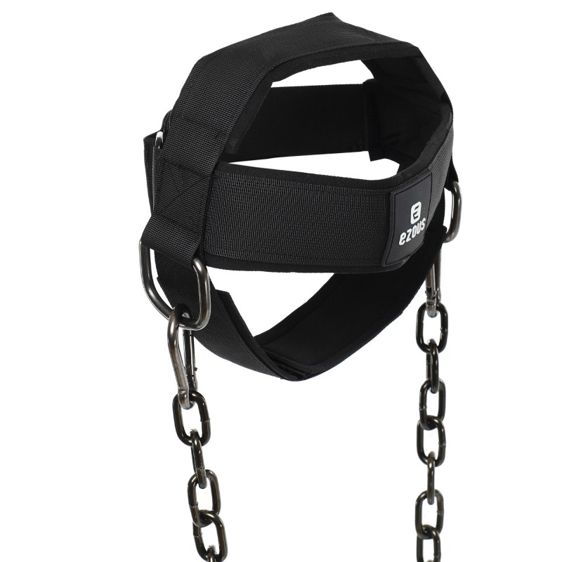 NECK Harness Ezous N-06 - це зручний аксесуар, який дає змогу навантажити м'язи шиї. Упряж складається зі спеціального кріплення на голову, яке виготовлене з поліестеру. До кріплення на голову за допомогою карабіна чіпляється сталевий ланцюг, на нього можна підвісити додаткове обтяження. Як обтяження під час виконання вправ з упряжжю можна використовувати диски від штанги або гантелі. Вагу обтяження необхідно поступово збільшувати, щоб не травмувати м'язи шиї. Зручне кріплення на голову регулюється за посадкою і фіксується за допомогою липучки. Карабіни є на обох кінцях ланцюга.
