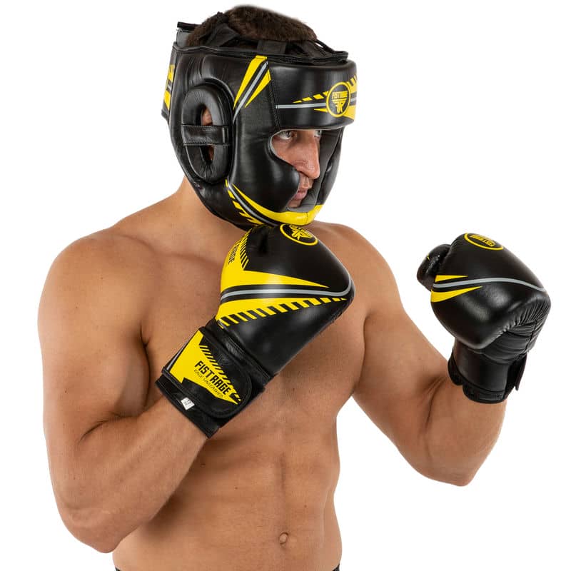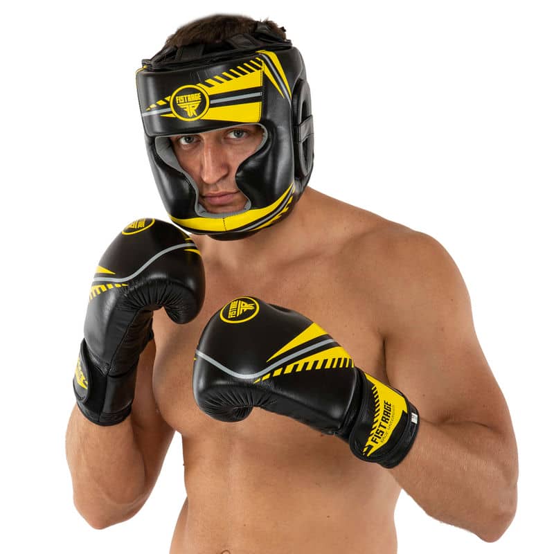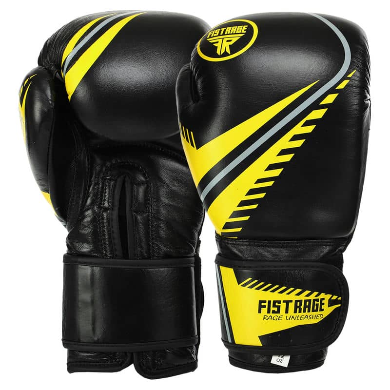 Боксерські рукавиці Fistrage 12 унцій, чорний-жовтий, код: VL-9355_12BKY