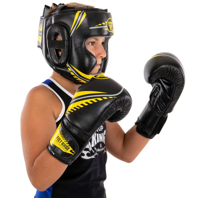 Боксерські рукавиці Fistrage 14 унцій, чорний-жовтий, код: VL-9355_14BKY