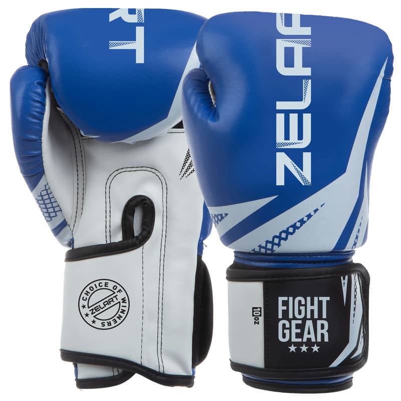 Рукавички боксерські на липучці Zelart 8 унції, синій-білий, код: BO-0866_8BLW