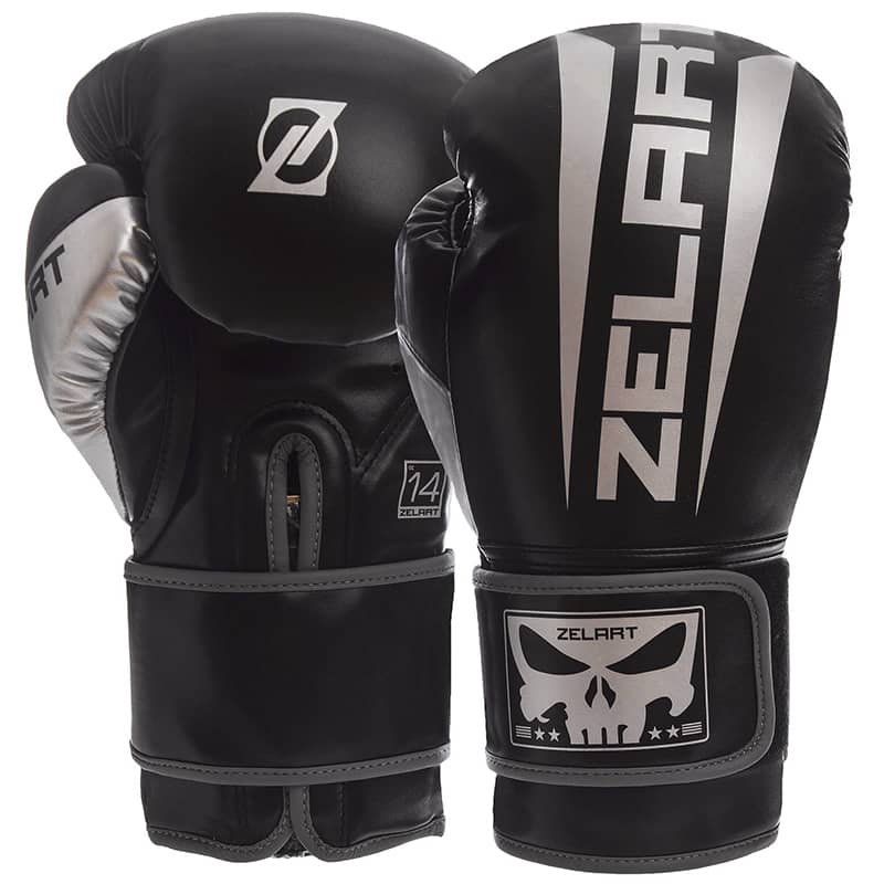 Рукавички боксерські Zelart PU 12 унцій, чорний-срібний, код: BO-1323_12BKGR