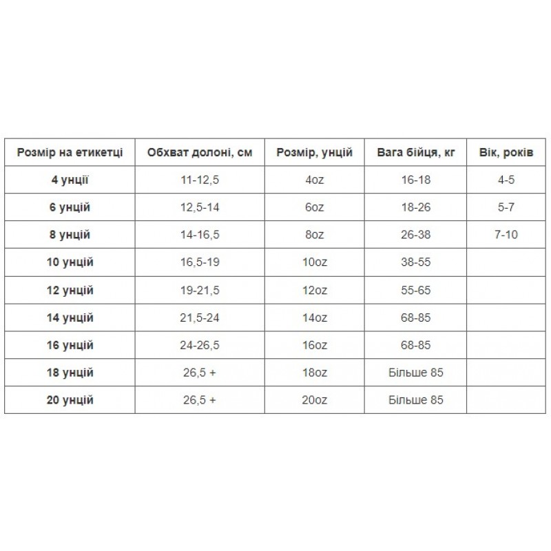 - Доступні у розмірах від 4 до 8 унцій, що дозволяє підібрати оптимальний варіант залежно від ваги та рівня підготовки спортсмена.