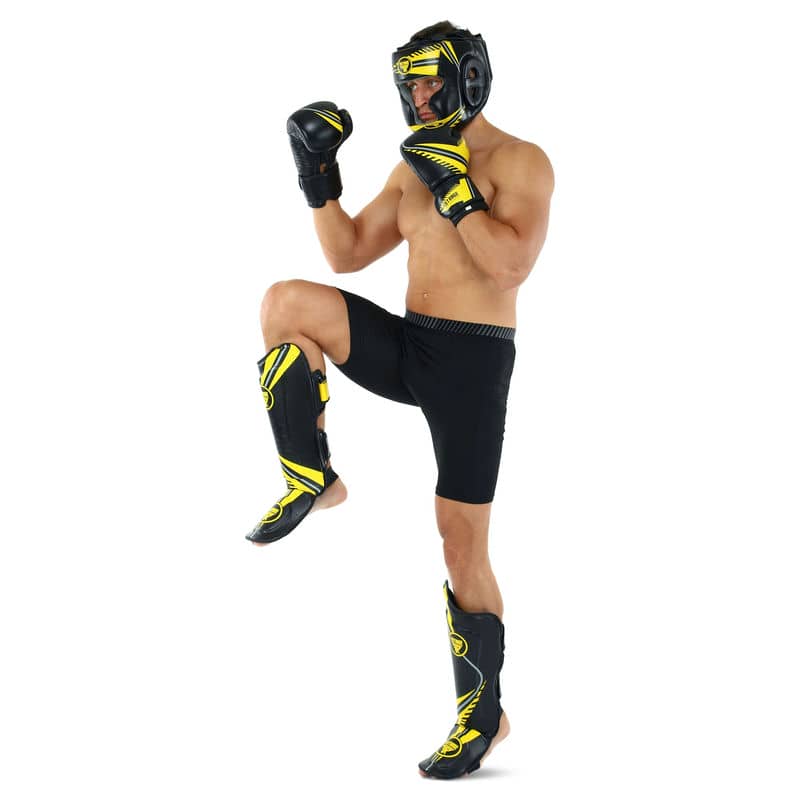 Захист гомілки і стопи для єдиноборств Fistrage XL чорний-жовтий, код: VL-9356_XLBK