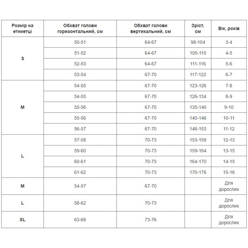 • Представлений у різних розмірах, що дозволяє підібрати оптимальний варіант як для дорослих, так і для дітей, забезпечуючи ідеальну посадку для кожного спортсмена.