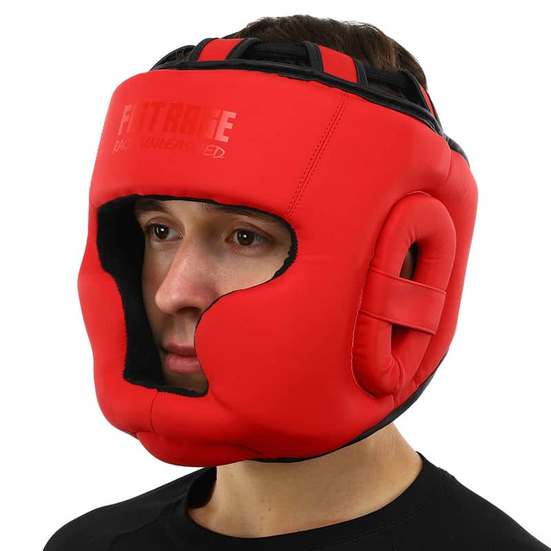 Шолом боксерський з повним захистом шкіряний Fistrage M, червоний, код: VL-4169_MR