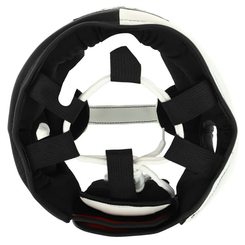 Особливу увагу приділено конструкції шолома: він оснащений посиленими вставками, які забезпечують максимальний захист голови від ударів. Внутрішня частина шолома виконана з м'якого та гіпоалергенного матеріалу, який забезпечує комфортне прилягання до голови та не викликає подразнень на шкірі. Система регулювання шолома дозволяє підганяти його під індивідуальні параметри голови, що забезпечує надійну фіксацію та запобігає зміщенню під час бою.