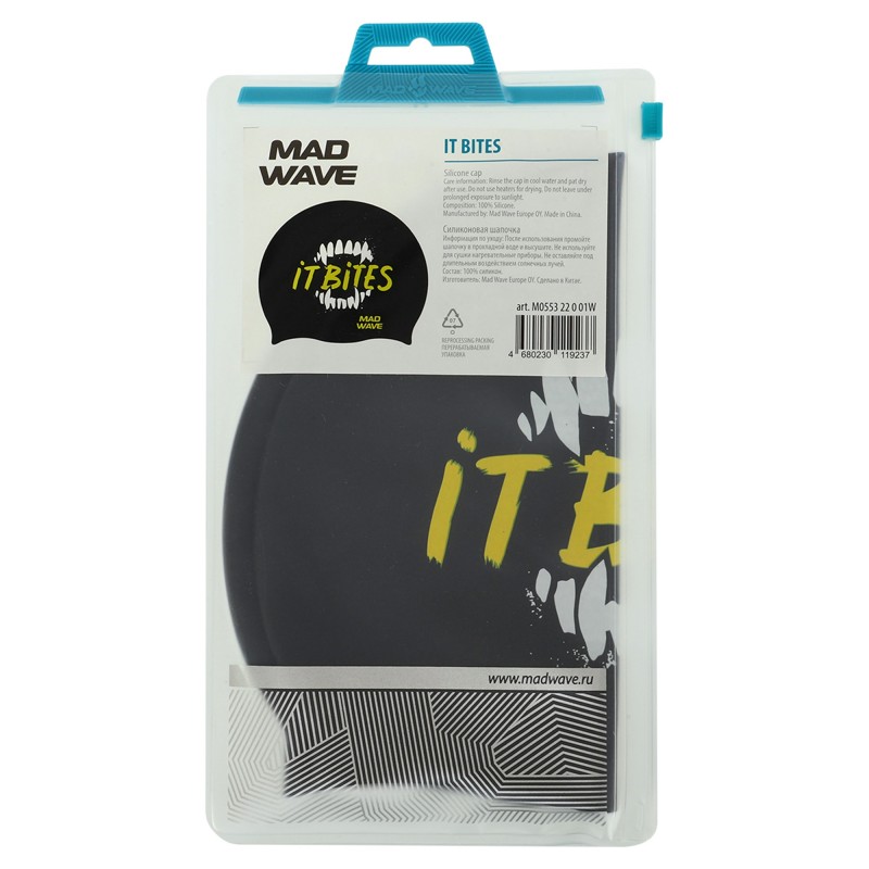 Шапочка для плавання силіконова для дорослих MadWave IT Bites чорний, код: M055322