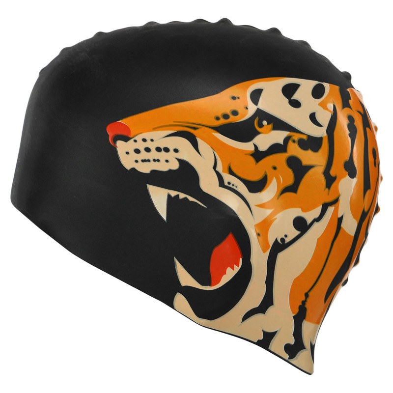 Шапочка для плавання силіконова для дорослих MadWave Tiger чорний, код: M055332