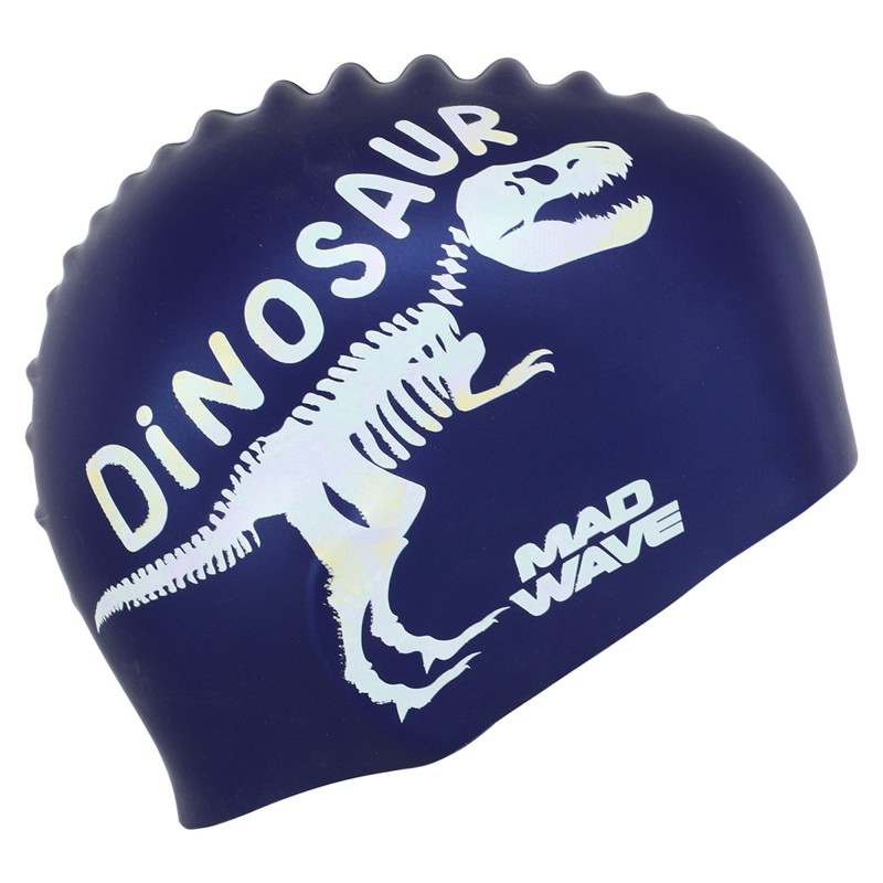 Шапочка для плавання силіконова юніорська MadWave Junior Dinosaur темно-синій, код: M057307