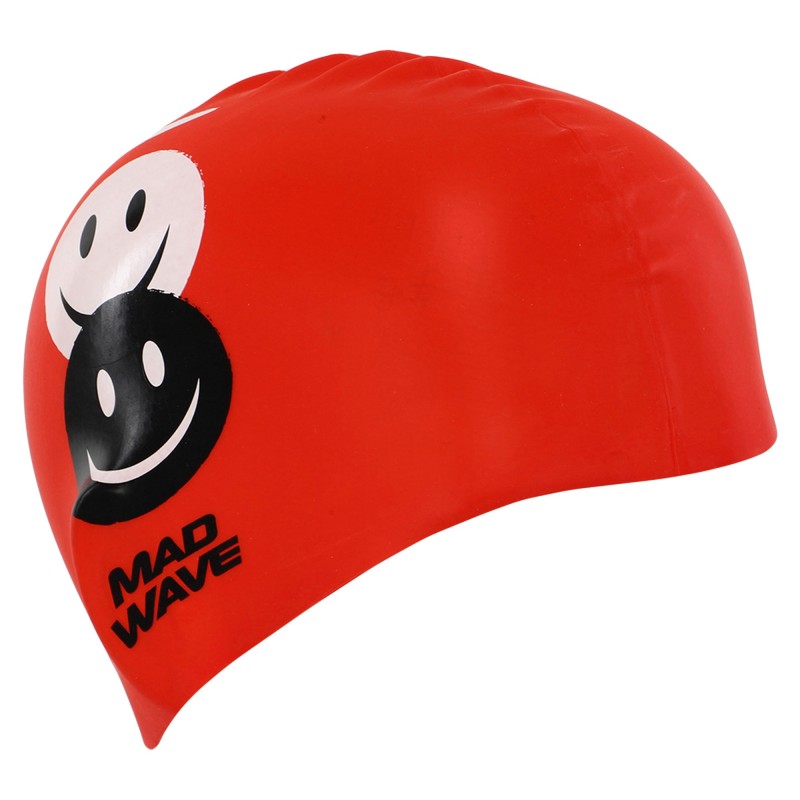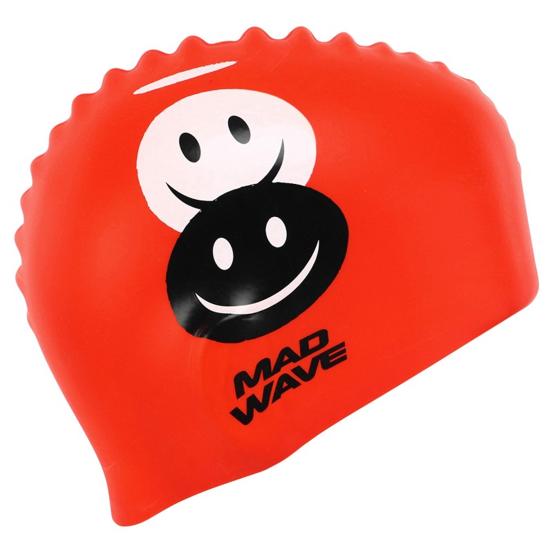 Шапочка для плавання силіконова юніорська MadWave Junior Emoji червоний, код: M057308