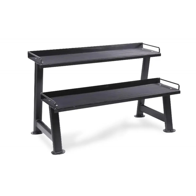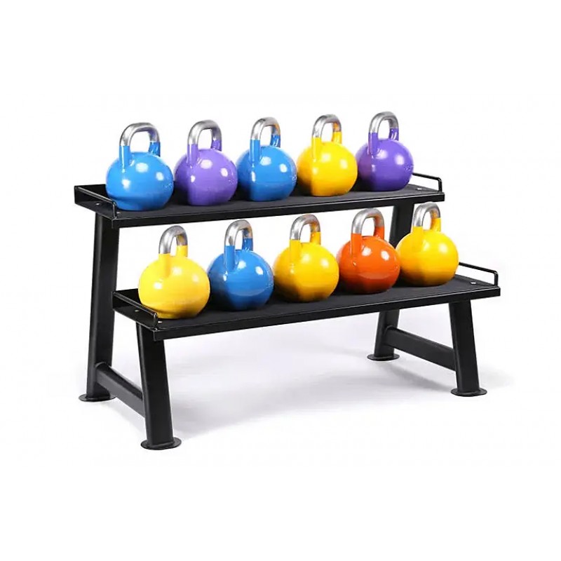 Двоярусна конструкція: Стійка має два яруси для зберігання гирь, що дозволяє економити простір і забезпечує зручний доступ до кожної гирі.