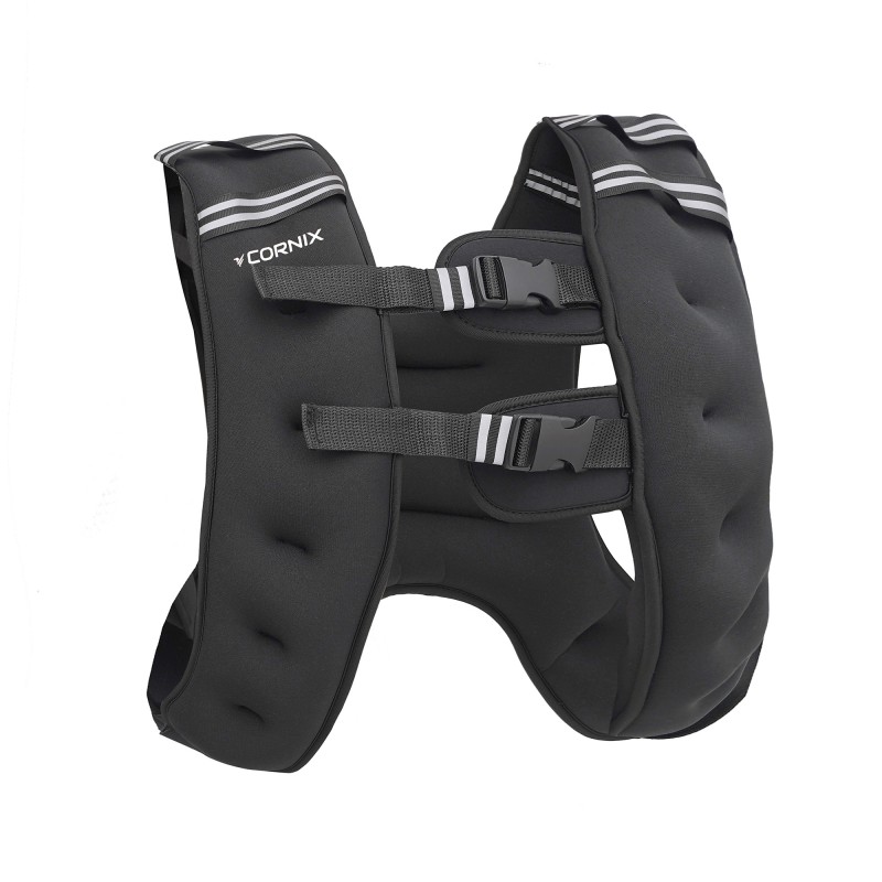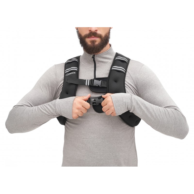 Жилет-обважнювач від Cornix має продуману форму та виконаний з якісних матеріалів. Зовнішня тканина - неопрен, еластична та приємна до тіла. Наповнювач - залізний пісок (iron sand), рівномірно розподілений по всьому жилету. На відміну від інших моделей, в яких обтяження розміщені в спеціальних кишенях, в жилетах Cornix не відчувається, що вага тягне вас в одну чи іншу сторону. Правильне балансування має важливе значення для ефективних та комфортних тренувань. Виріб фіксується за допомогою двох застібок із захистом. Регулювання лямок дозволяє підігнати жилет під вашу фігуру і вибрати відповідний ступінь прилягання до тіла.
