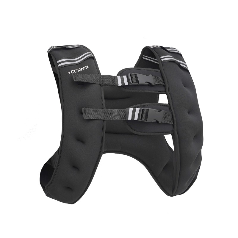 Жилет-обважнювач від Cornix має продуману форму та виконаний з якісних матеріалів. Зовнішня тканина - неопрен, еластична та приємна до тіла. Наповнювач - залізний пісок (iron sand), рівномірно розподілений по всьому жилету. На відміну від інших моделей, в яких обтяження розміщені в спеціальних кишенях, в жилетах Cornix не відчувається, що вага тягне вас в одну чи іншу сторону. Правильне балансування має важливе значення для ефективних та комфортних тренувань. Виріб фіксується за допомогою двох застібок із захистом. Регулювання лямок дозволяє підігнати жилет під вашу фігуру і вибрати відповідний ступінь прилягання до тіла.