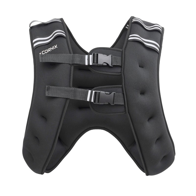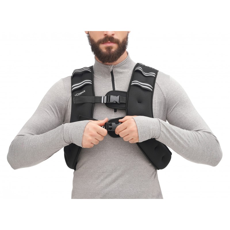 Жилет-обважнювач від Cornix має продуману форму та виконаний з якісних матеріалів. Зовнішня тканина - неопрен, еластична та приємна до тіла. Наповнювач - залізний пісок (iron sand), рівномірно розподілений по всьому жилету. На відміну від інших моделей, в яких обтяження розміщені в спеціальних кишенях, в жилетах Cornix не відчувається, що вага тягне вас в одну чи іншу сторону. Правильне балансування має важливе значення для ефективних та комфортних тренувань. Виріб фіксується за допомогою двох застібок із захистом. Регулювання лямок дозволяє підігнати жилет під вашу фігуру і вибрати відповідний ступінь прилягання до тіла.