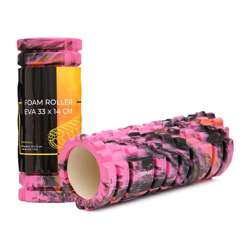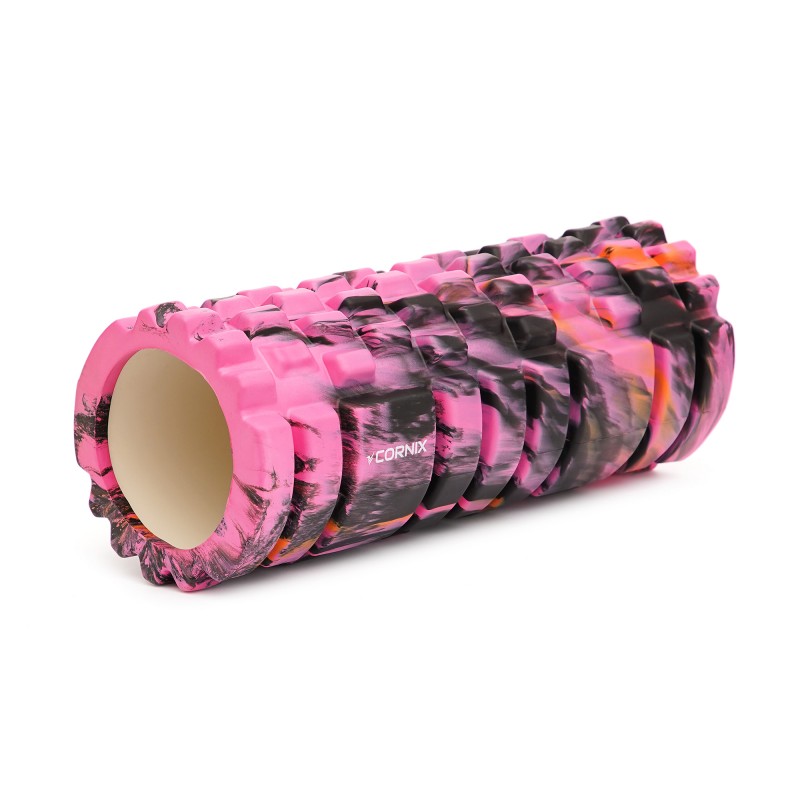 Масажний ролик від Cornix відрізняється високою якістю виконання та цікавим дизайном. Завдяки спеціальній технології змішування кольорів, кожен малюнок буде унікальним. Поверхня валика не липне до шкіри і при розкатуванні не викликає відчуття стягнутості ніжних ділянок тіла. Валик має комбіновану структуру, в основі циліндричний каркас з ABS пластику, а масажна поверхня виконана із приємного на дотик піноматеріалу EVA. Особливий рельєф роллера забезпечує унікальний баланс м'якості та пружності. Виріб не має стороннього запаху, відрізняється стійкістю до вологи. Валик досить простий у догляді, за що вже отримав сотні позитивних відгуків користувачів (спортсменів, тренерів, реабілітологів). Після занять ви почуватиметеся чудово - як заново народилися і відпочили після масажу.