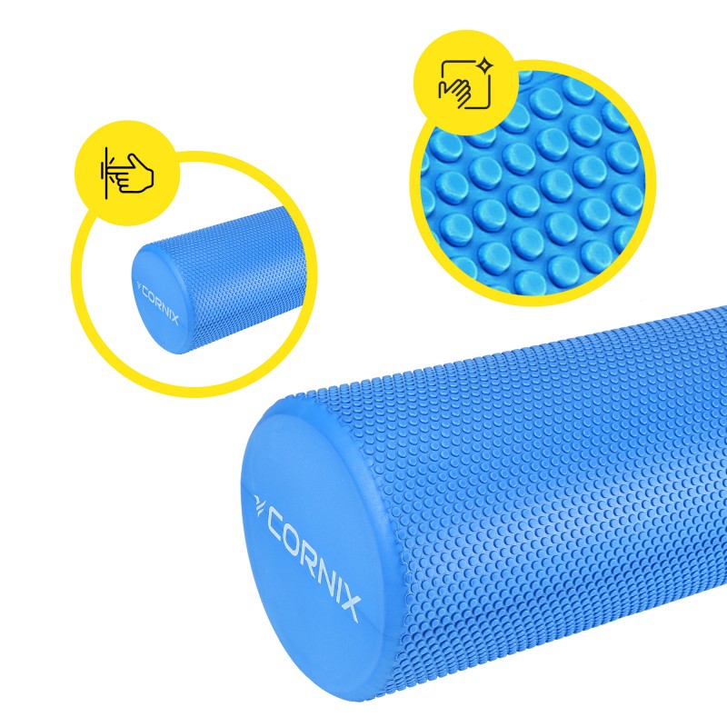 Спортивний ролик Cornix EVA+ виготовлений із високоякісного матеріалу EVA, який відзначається міцністю, стійкістю до деформацій і довговічністю. Завдяки середньому рівню твердості він підходить для широкого кола користувачів - від новачків до досвідчених спортсменів. Довжина ролика складає 45 см, а діаметр - 15 см, що дозволяє ефективно опрацьовувати великі м'язові групи, такі як спина, стегна чи сідниці, забезпечуючи глибший і рівномірніший масаж. Незважаючи на довжину, ролик зберігає легку вагу, що спрощує транспортування та використання у різних умовах - вдома, у спортзалі або навіть у подорожах. Текстурована поверхня гарантує надійний контакт із тілом, не ковзає та створює приємний масажний ефект.
