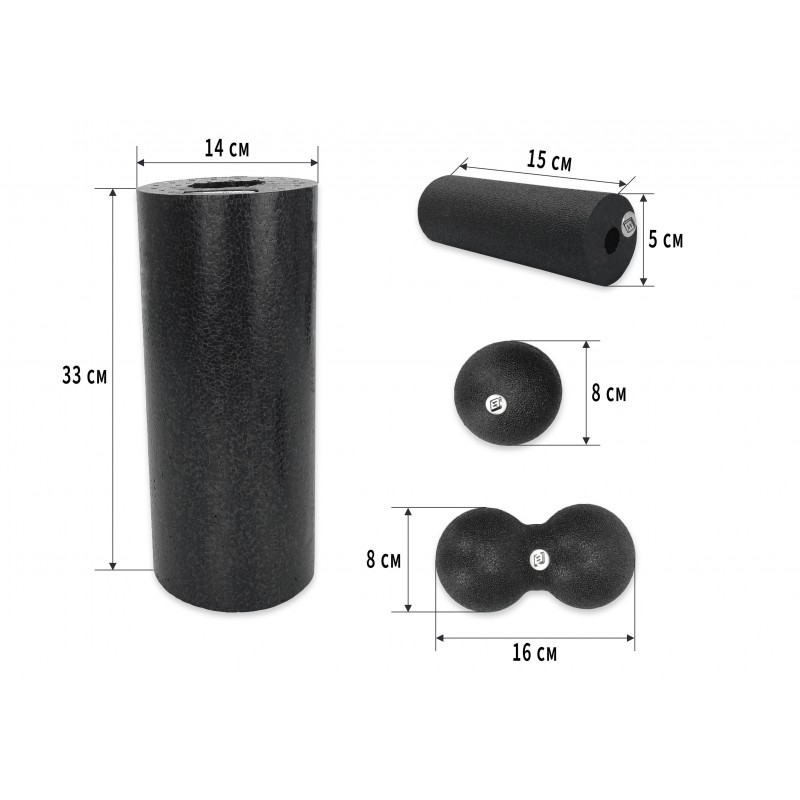 Масажний набір EasyFit MioSet-3 - це класичний набір для масажу та релізу всіх м'язів. Він універсальний та відрізняється серед усіх наборів своєю максимальною комплектацією. Набір для масажу складається з одного м'ячика розміром 16х8 см (подвійний), м'ячик 8 см, а також два ролика розмірами 15х5 см і 33х14 см. М'ячики і валики виготовлені з матеріалу ЕПП (екструдований поліпропілен), який унікальний твердістю і довговічністю. Комплект масажних елементів ефективний та допомагає підтримувати здоров'я м'язів, знижувати стрес, покращуючи загальне самопочуття.