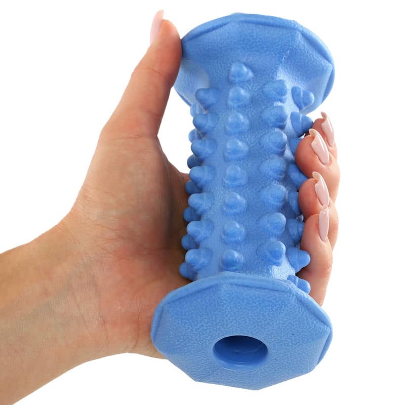 Ролик довжиною 15 см і діаметром 7 см виготовлений із міцного полівінілхлориду (PVC), що забезпечує його довговічність та стійкість до зносу. Циліндрична форма дозволяє комфортно катати ролик поверхнями, а по всьому периметру розташовані шипи, які створюють додатковий вплив на біологічно активні точки, що посилює ефект масажу. Шипована поверхня сприяє покращенню кровообігу та стимулює регенерацію тканин, допомагаючи відновитися після фізичних навантажень. Це особливо корисно для людей, які страждають на плоскостопість, оскільки ролик сприяє правильному розподілу навантаження на стопи та зміцненню м'язів зводу стопи.
