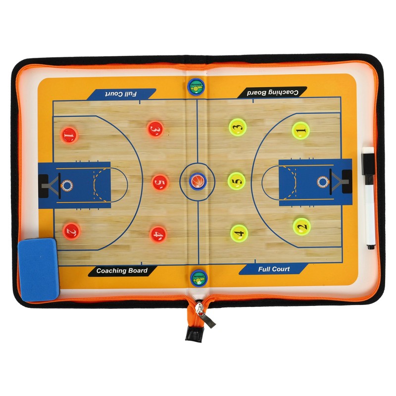 Тактична дошка призначена для тренерів з баскетболу. Це простий і ефективний інструмент візуалізації, за допомогою якого тренер може позначити позиції та рух гравців. Може використовуватися в період підготовки, а також безпосередньо під час гри, коли необхідно швидко і наочно розібрати ігрові моменти і пояснити зміни в тактиці.