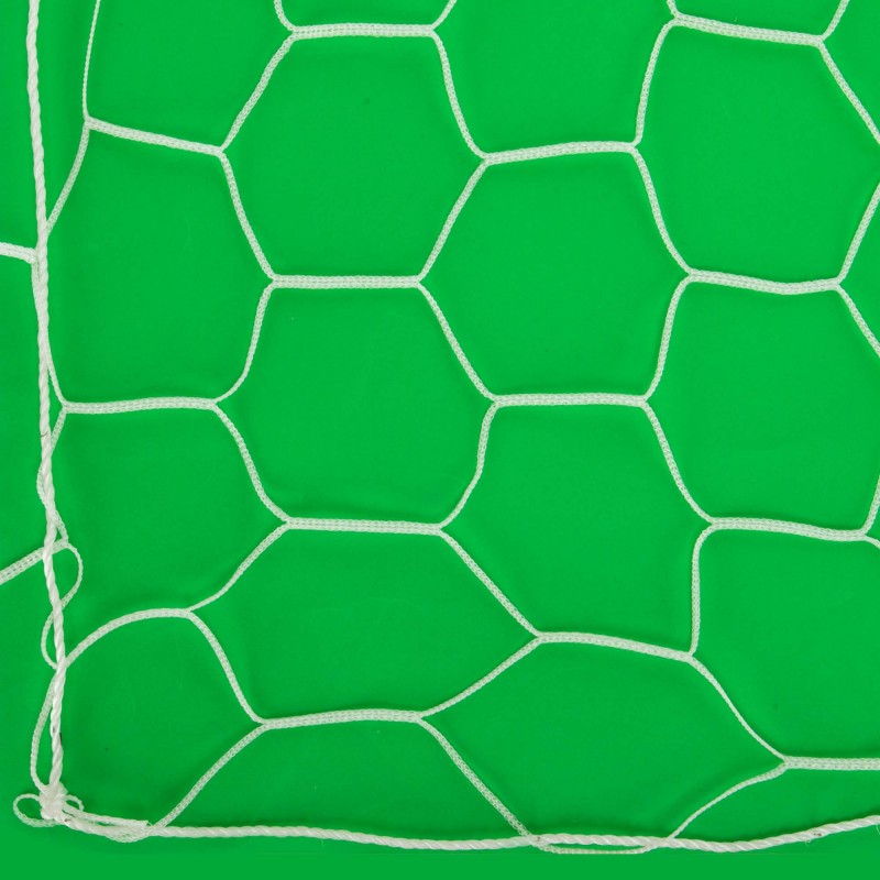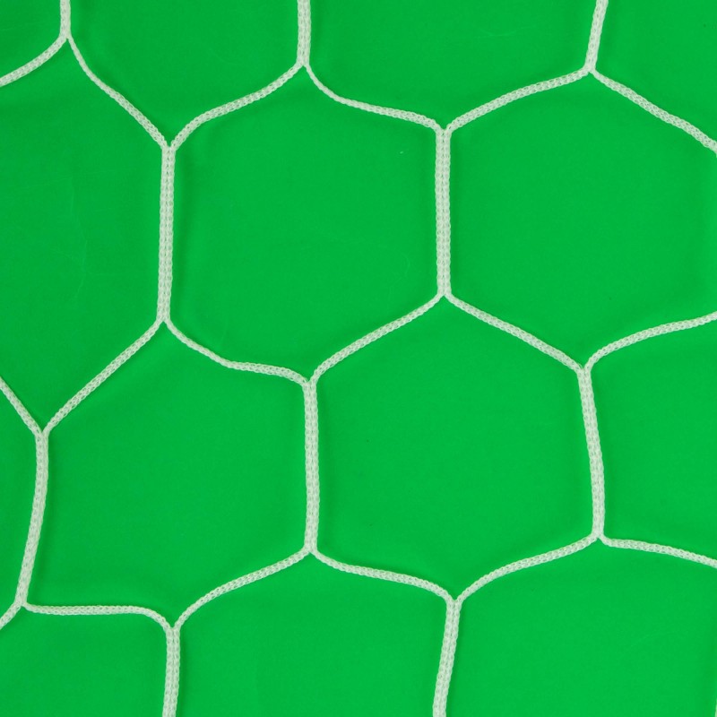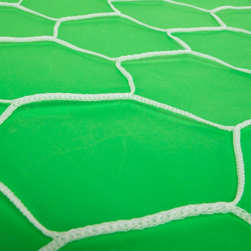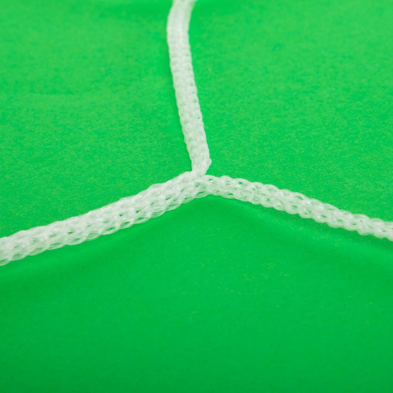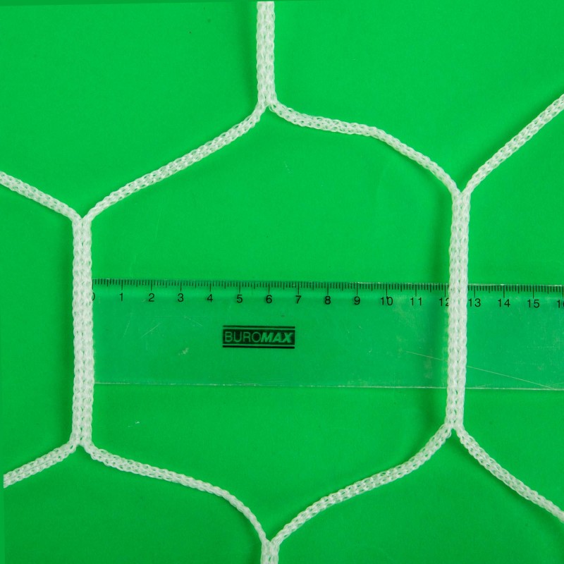 CIMA FB-3216 є комплектом з двох сіток, які кріпляться на футбольні ворота, забезпечуючи їх повноцінний захист і зручність експлуатації. Головна відмінність цієї моделі - це шестикутна форма осередку, що нагадує соту, яка не тільки естетично приваблива, а й сприяє рівномірному розподілу навантаження при ударах по воротах. Розмір осередків становить 7,5х7,5 см, що гарантує надійне утримання м'ячів різних розмірів, запобігаючи їх прольоту крізь сітку.