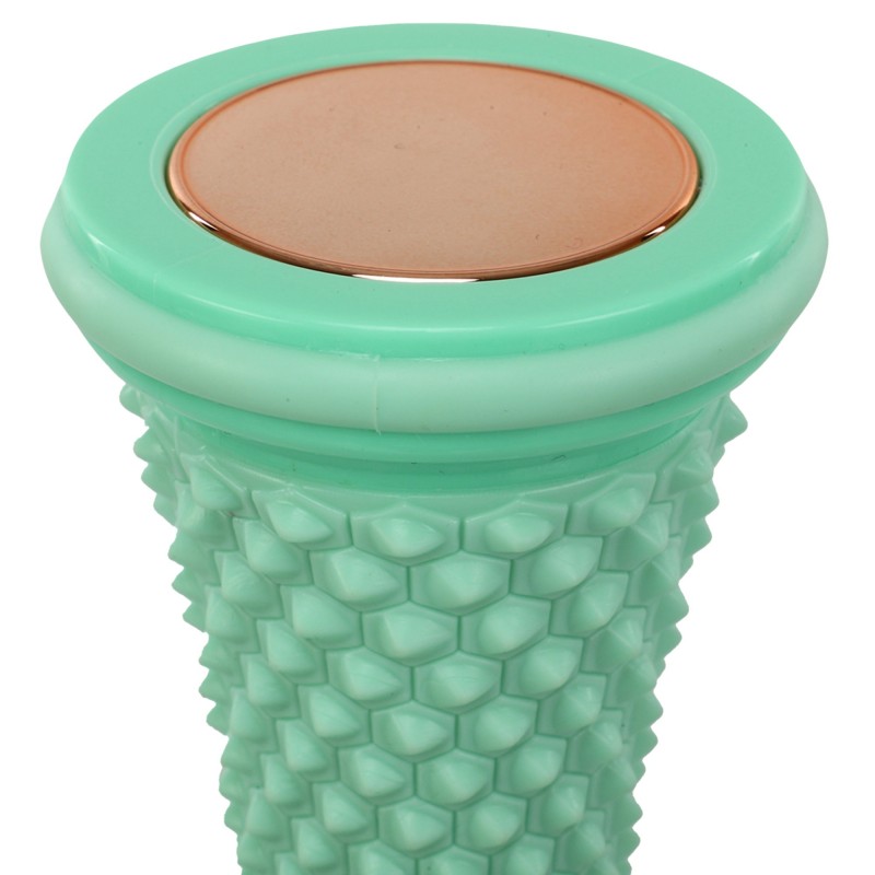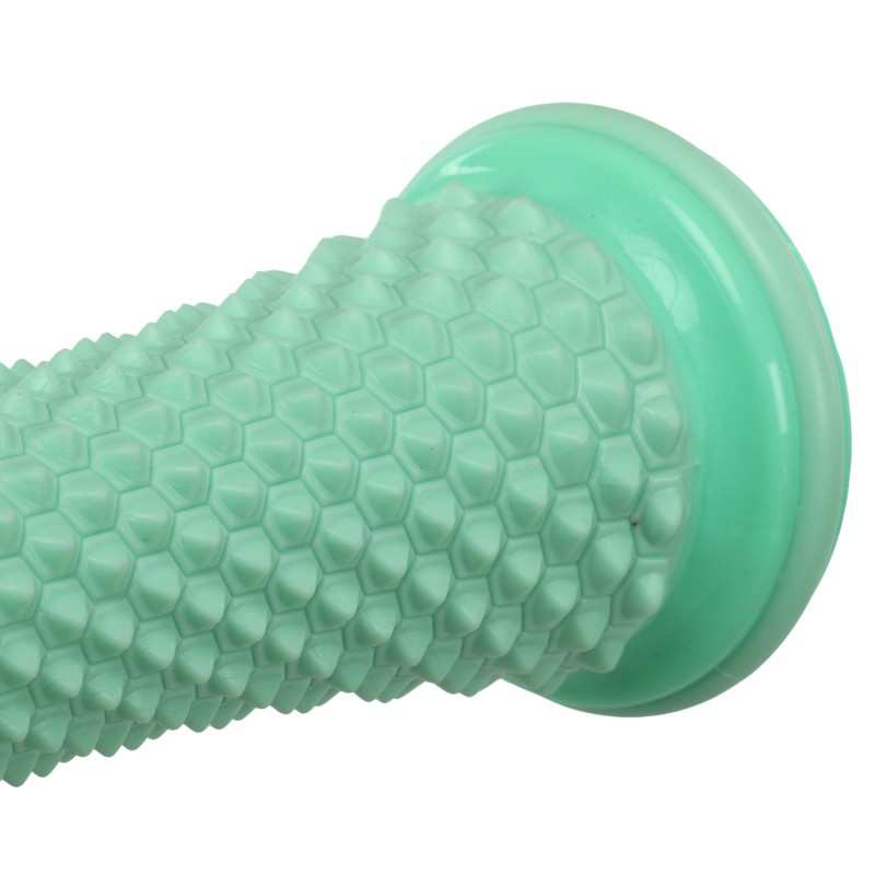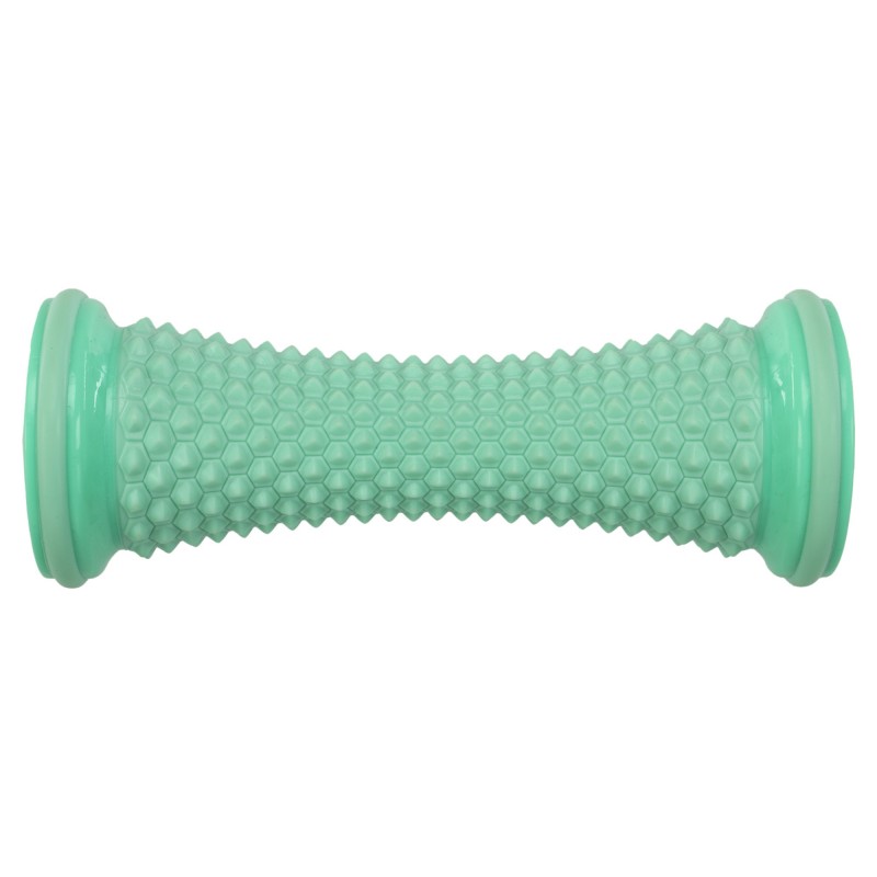 Рол масажний виконаний із пластику, має циліндричну форму, яка дозволяє зручно та ефективно використовувати його для масажу різних частин тіла. По всьому периметру інвентарю розташовані шипи, які виконують функцію активного на м'язові тканини. Вони сприяють глибокому масажу, проникаючи в м'які тканини та стимулюючи кровообіг, що прискорює процес відновлення м'язів та полегшує напругу.